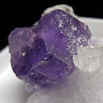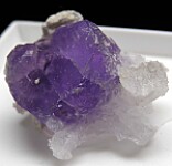 Bright purple Coquimbite crystals from recent finds at the Monte Arsiccio Mine in Italy. The Monte Arisiccio Mine is an old iron mine that worked Barite, Pyrite, and iron oxide ore bodies. Along with other uncommon sulfate minerals, this mine has produced what are in my opinion the world's best Coquimbite specimens. This specimen has translucent Coquimbite crystals to 1.3cm in size that have incredibly rich purple coloration. These specimens should be kept sealed in plastic bags or boxes or otherwise be kept from high humidity or moisture. This specimen comes mounted in a plastic box.