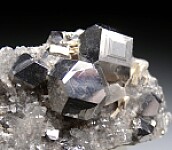 Highly lustrous metallic Carrollite crystals on matrix with small Quartz and Calcite crystals. The crystals reach 1cm in size and are undamaged with top luster. This is a highly aesthetic older piece I've had for about 20 years and am releasing for sale now for the first time.