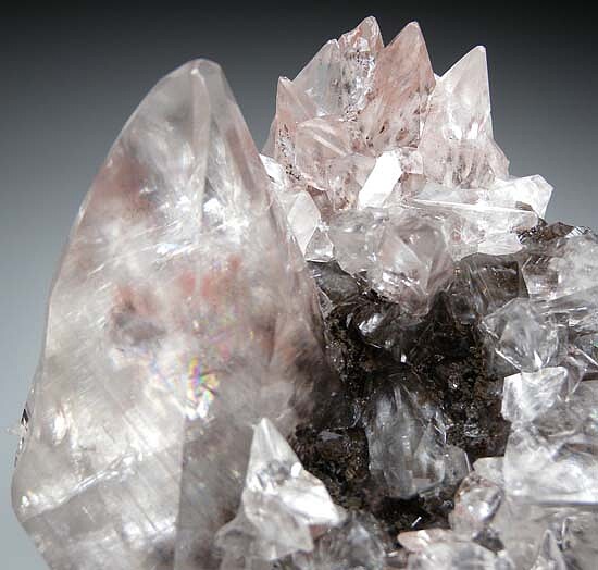 Spectacular, bright and gemmy Calcite crystals on matrix. Incredibly beautiful Calcite from a little know Mexican locality. Main crystal is 6.5cm tall and accented by numerous smaller crystals. Undamaged. Much better and brighter in person.