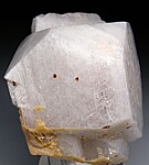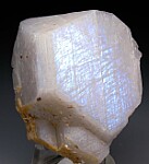 From a recent find of crystallized moonstone from Tanzania, this is easily the best example I've seen or owned. The specimen is composed of a large central crystal with a few smaller crystals above and below. These have been found here in the past, but this find has much higher quality, porcelain-like lustrous crystals than those found previously. There are also small crystals of brown Dravite Tourmaline attached. The crystals display a satiny blue 'Schiller effect' of color when turned under lighting.