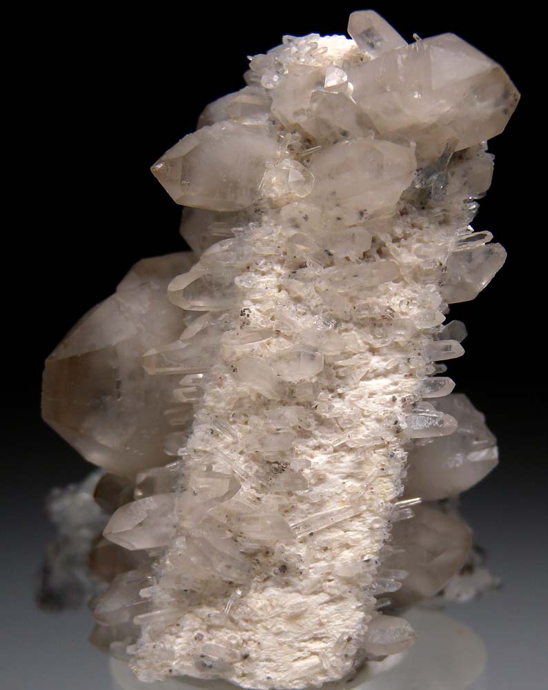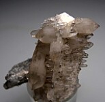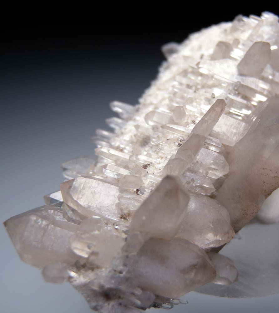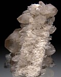 Cris-crossing Quartz crystals known as 'Gitter Quartz' (a German name for fence or lattice Quartz). The Quartz crystals form epitaxially on elongated tan Feldspar crystals. The Erongo Mountains is one of the only localities to produces this style of unusual Quartz.
