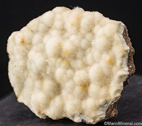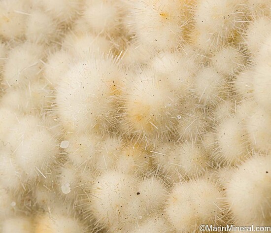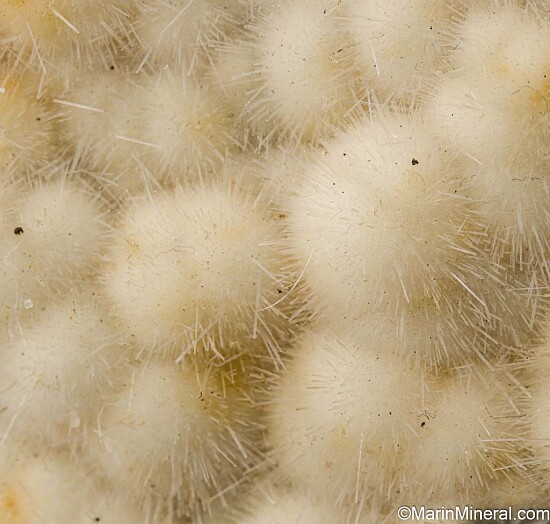 Translucent white needle-like crystals on Natrolite in radial clusters on matrix. A beautiful example of USA Natrolite from the collection of Chuck Trantham. Personally collected by Chuck in 1959.