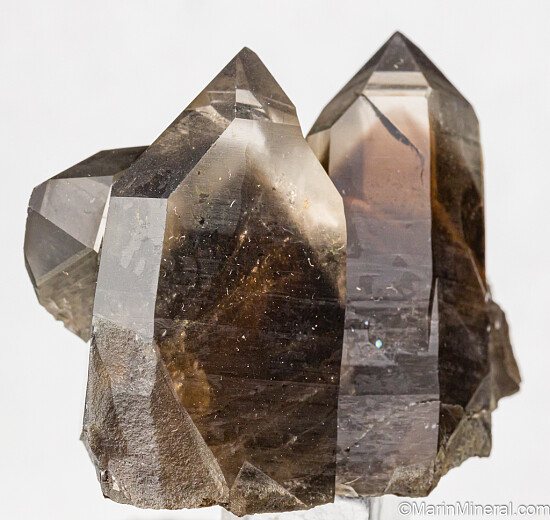 Cluster of 3 undamaged smokey Quartz crystals from a recent find in the Erongo Mountains. These new crystals have excellent phantoms near the terminations, and this specimen was the best quality and had the most aesthetic arrangement of crystals of any of the specimens I saw.