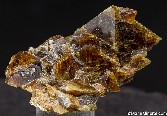 Double-terminated, translucent rootbeer brown Vesuvianite crystals to 2.5cm on a solid matrix of massive Vesuvianite. A wonderful example of a California Vesuvianite and of higher quality than most from this locality. Valued at $150.