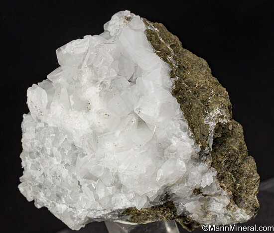 Glassy white Datolite crystals on matrix. Found by a friend while prospecting in this area known for Jadeite and Rosenhahnite crystals. These were found in a single boulder that was excavated during construction work on Highway 101. This boulder produced what are considered Californias's best Datolite. Individual crystals on this specimen reach 1 cm in size and are translucent to transparent. Superb piece for a California suite of minerals.