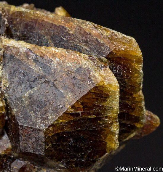 Parrallel grown, translucent rootbeer brown Vesuvianite crystals on the solid matrix of intergrown Vesuvianite crystals. A wonderful example of a California Vesuvianite and of higher quality than most from this locality.