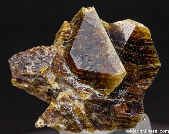 Cluster of translucent rootbeer brown Vesuvianite crystals to 2cm. A wonderful example of a California Vesuvianite and of higher quality than most from this locality.