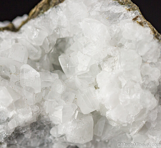 Glassy white Datolite crystals on matrix. Found by a friend while prospecting in this area known for Jadeite and Rosenhahnite crystals. These were found in a single boulder that was excavated during construction work on Highway 101. This boulder produced what are considered Californias's best Datolite. Individual crystals on this specimen reach 7mm in size and are translucent to transparent. Superb piece for a California suite of minerals.