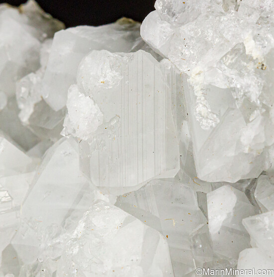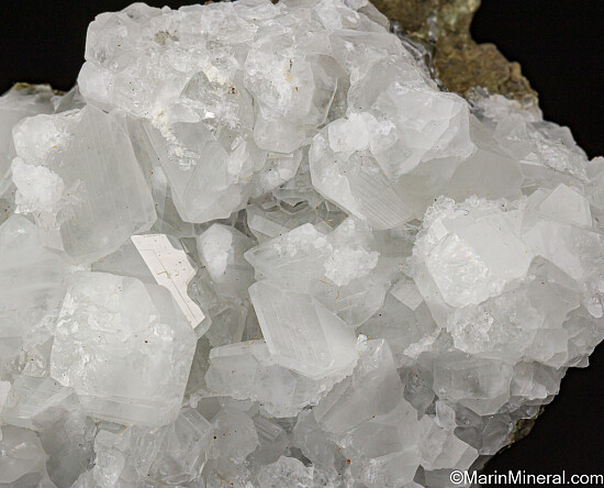 Glassy white Datolite crystals on matrix. Found by a friend while prospecting in this area known for Jadeite and Rosenhahnite crystals. These were found in a single boulder that was excavated during construction work on Highway 101. This boulder produced what are considered Californias's best Datolite. Individual crystals on this specimen reach 1 cm in size and are translucent to transparent. Superb piece for a California suite of minerals.