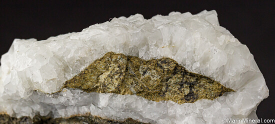 Glassy white Datolite crystals on matrix. Found by a friend while prospecting in this area known for Jadeite and Rosenhahnite crystals. These were found in a single boulder that was excavated during construction work on Highway 101. This boulder produced what are considered Californias's best Datolite. Individual crystals on this specimen reach 1.3 cm in size and are translucent to transparent. Superb piece for a California suite of minerals.