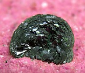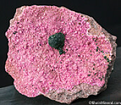 Dark olive green Kolwezite atop rhombs of vivid pink Cobaltoan Calcite (or possibly Cobaltoan Dolomite) creating a stunning mixture of colors and forms. The Kolwezite forms a superb 'pinwheel' formation 1.3cm wide. Kolwezite is a Copper Cobalt Carbonate Hydroxide and this is the type locality for the species. Was listed at $350 on my website.