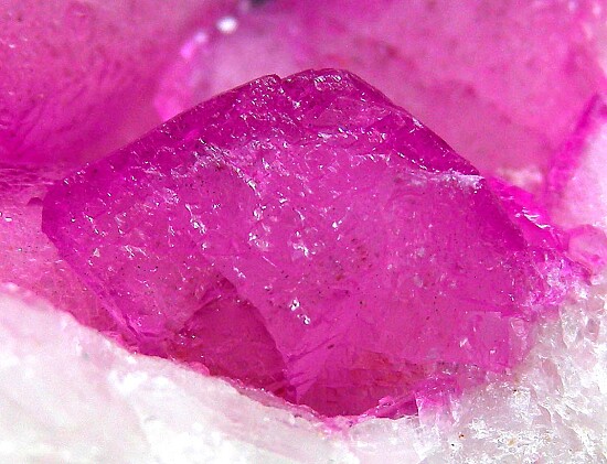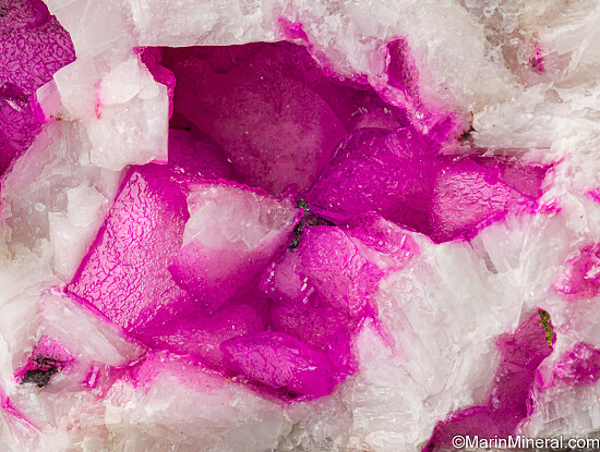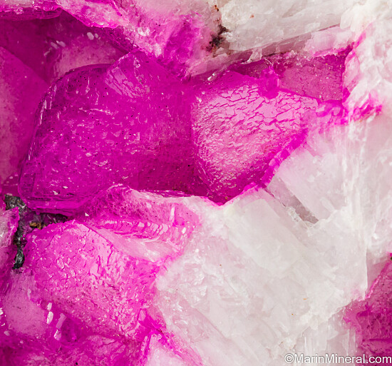 Large crystals of vivid pink Cobaltoan Calcite in vugs in white Calcite. Big crystals with great color. It's not perfect, but there are some pristine 1cm+ sized crystals and the color is incredible. Valued at $150.
