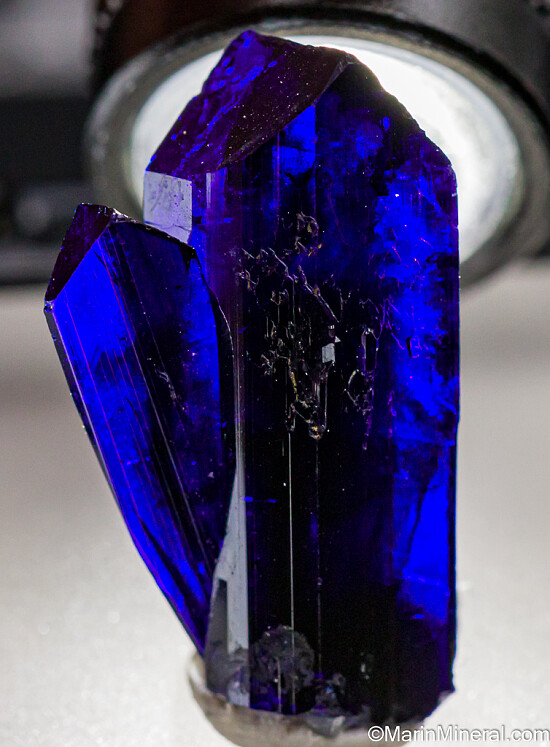Fine cluster of highly translucent Azurite crystals. Complete all around and nearly pristine with very minor edge wear. Ex. Ron Pellar collection.