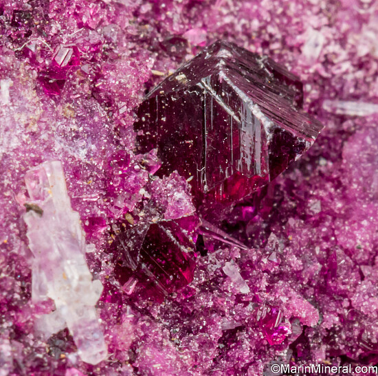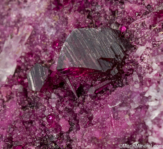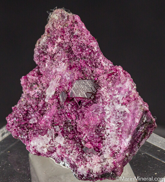 Rare specimen of the chromium rich Clinochore varietal known as Kammererite. Main crystal is 5mm in size and present on a druse of smaller crystals.