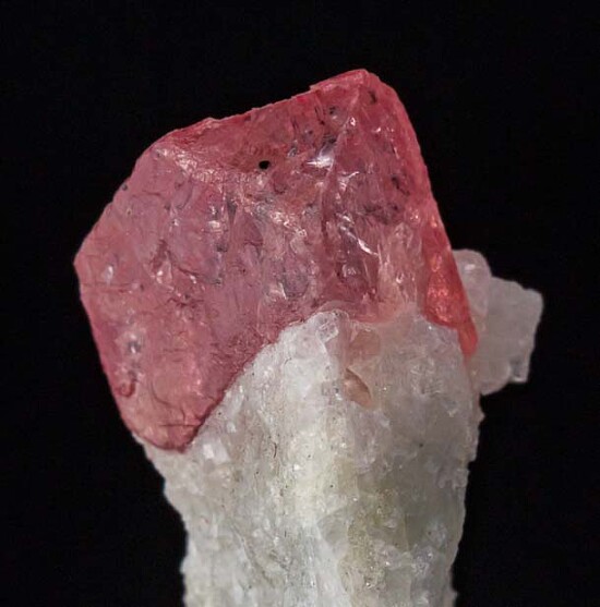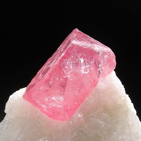 An 1.5cm crystal of pink Spinel in matrix. A complete, slightly elongated octahedron with good transparency.