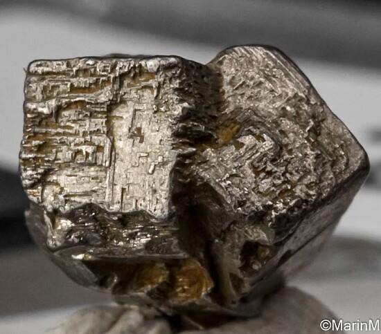 Intergrown cubic platinum crystals from the famous and now closed Konder platinum deposit. These are two complete intergrown crystals with good form. Single cubes are the norm and these intergrown clusters have more appeal. These are no longer being found. Weighs 1.9 grams.