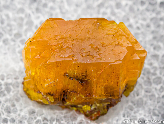 Stout, complete single Legrandite crystal with good transparency. Well crystallized all around with a broad, flat termination. Lustrous undamaged crystal faces all around except for a couple small nicks on the backside.