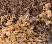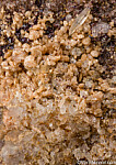 Tan colored crystals of Svanbergite, Quartz crystals, and micro Rutile crystals on a Quartz matrix. Svanbergite is an uncommon Strontium Aluminum Phosphate Sulfate Hydroxide mineral. Crystals to about 3mm in size.