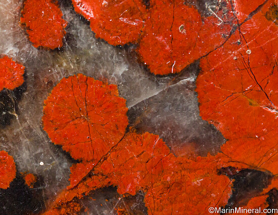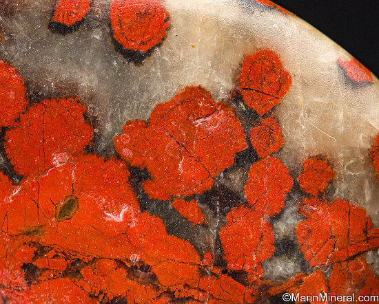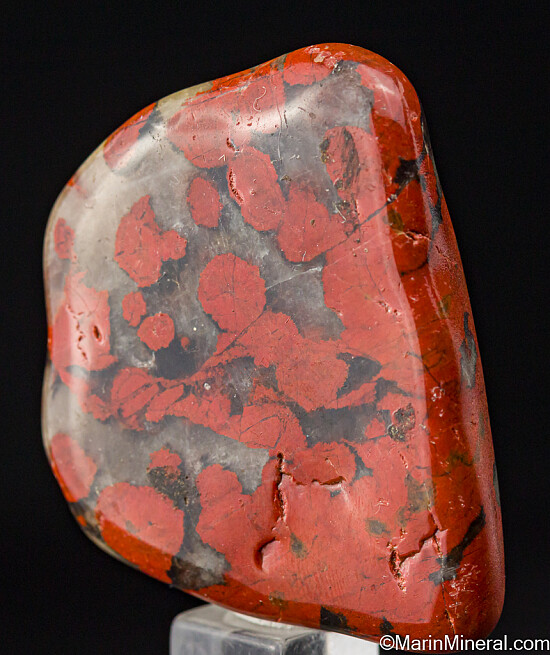 Polished specimen of Poppy Jasper with distinctive red orbicular formations. Named the official rock of Morgan Hill back in 2002, it is now hard to come by.