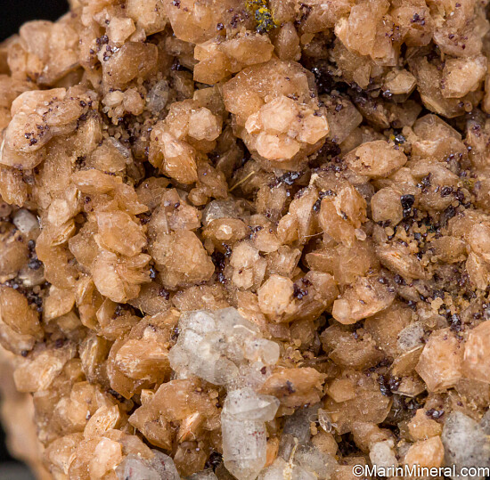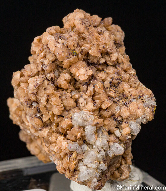 Cluster of intergrown crystals of Svanbergite with attached white Topaz crystals and tiny dark Rutile crystals. There is no matrix, nothing but interlocking Svanbergite with the attached Topaz and Rutile. Svanbergite is an uncommon Strontium Aluminum Phosphate Sulfate Hydroxide mineral. An amazingly rich example, I can't find any matrix, it's nothing but solid Svanbergite crystals with Topaz and Rutile. Valued at $150.