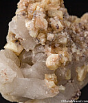 Tan colored crystals of Woodhouseite and micro Rutile crystals on Quartz. Woodhouseite crystals reach just over 4mm in size. Lots of great crystals on this one, valued at $150.