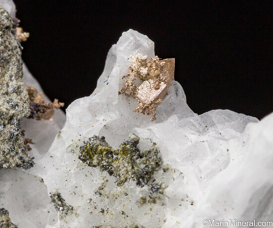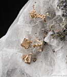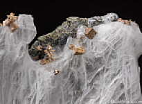 Silver crystals that have been exposed from white Calcite with a small amount of Safflorite matrix. Cubic Silver crystals are uncommon and these are superbly formed, sharp cubes of about 1-2mm in size. There are possibly more Silver crystals attached tot he matrix and under the Calcite, though the majority of Silver crystals on this specimen appear suspended in the Calcite. Valued at $250.