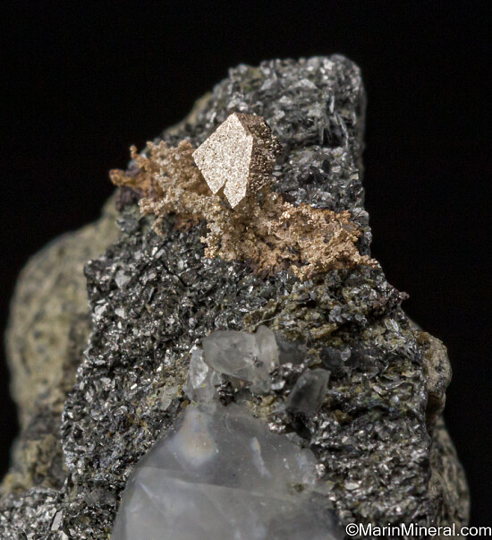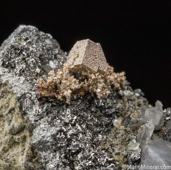 Cubic Silver crystals on matrix that have been exposed from white Calcite. Cubic Silver crystals are uncommon and these are superbly formed, sharp cubes to about 1.5mm in size. The crystals are present on a Safflorite matrix around some remaining etched Calcite.