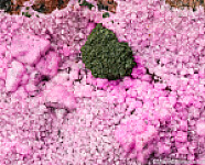 Dark olive green Kolwezite atop rhombs of pink Cobaltoan Calcite (or possibly Cobaltoan Dolomite) creating a stunning mixture of colors and forms. Kolwezite is a Copper Cobalt Carbonate Hydroxide and this is the type locality for the species. A beautiful large display piece and combination specimen of two desireable species together. Sawcut on back.