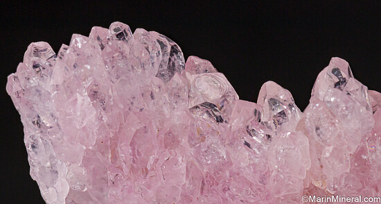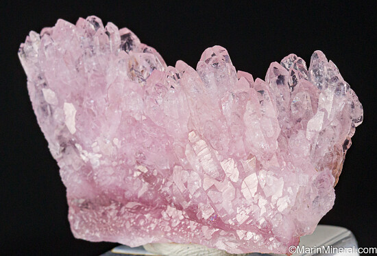 Tall, narrow wall-like cluster of Rose Quartz crystals from Brazil. Great crystals with classic rose pink coloration. Can be displayed from either side.