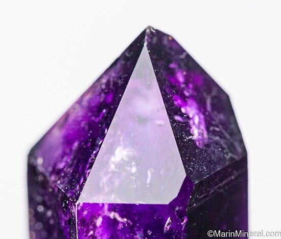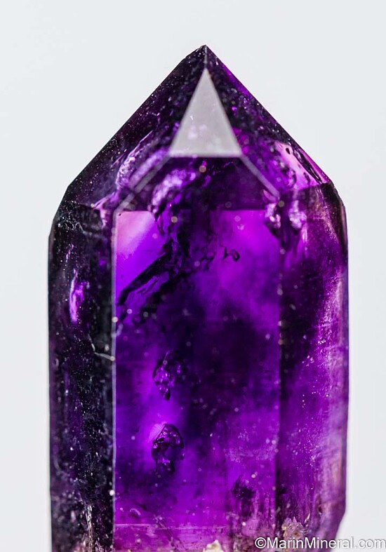 Undamaged single Amethyst crystal with the top 'grape jelly' color. Complete, transparent crystal that is partially double-terminated. This is a thumbnail sized example of the top quality that sell for many thousands of dollars when larger.