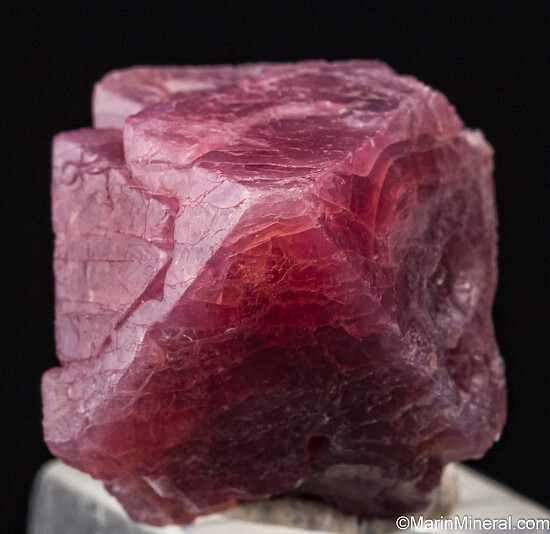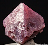 Purple red, translucent Spinel crystal from the Mahenge, Tanzania. In 2007 spinel was discovered in a large marble massif near the town of Mahenge. The best quality have a very saturated hot pink to pure red color without secondary brown overtones, making them highly valuable as gemstones. Therefore, good crystals are often destroyed for their gem value. This is a good sized specimen that survived the gem industry. It's a mostly complete good sized crystal with sharp form.