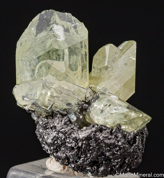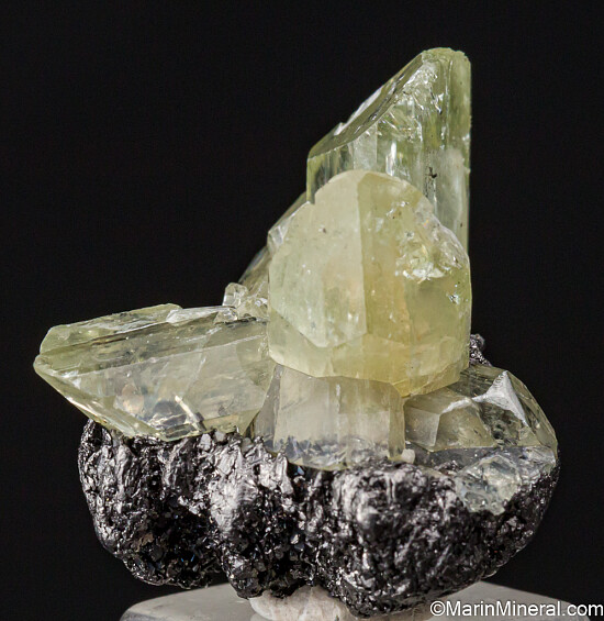 Gemmy, light green Diopside crystals on a matrix of solid Graphite. Dramatic starburst formation of crystals spraying up in varius directions. Undamaged except for some slight edge chipping. Valued at $200.