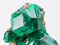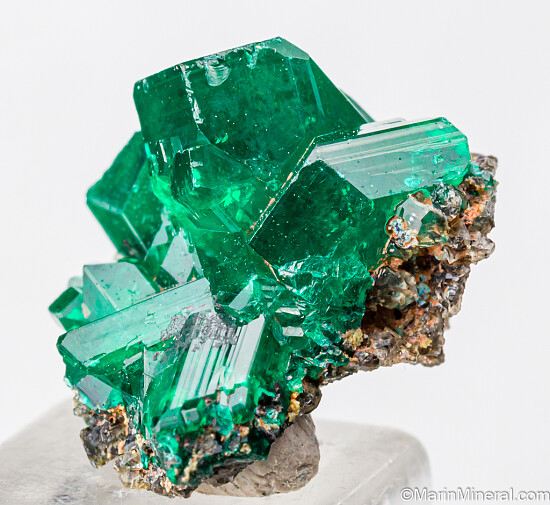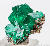 Cluster of deep emerald green Dioptase crystals from the Congo. Sharp and lustrous crystals on a small amount of matrix.