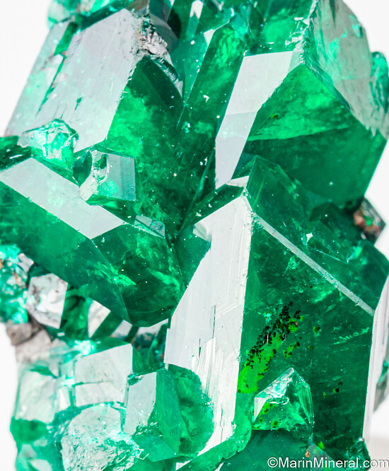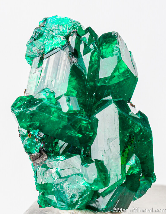 Cluster or large, deep emerald green crystals of Dioptase from the Congo. Crystals to over 1cm in size comprise the cluster without any matrix.