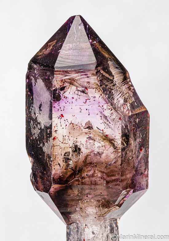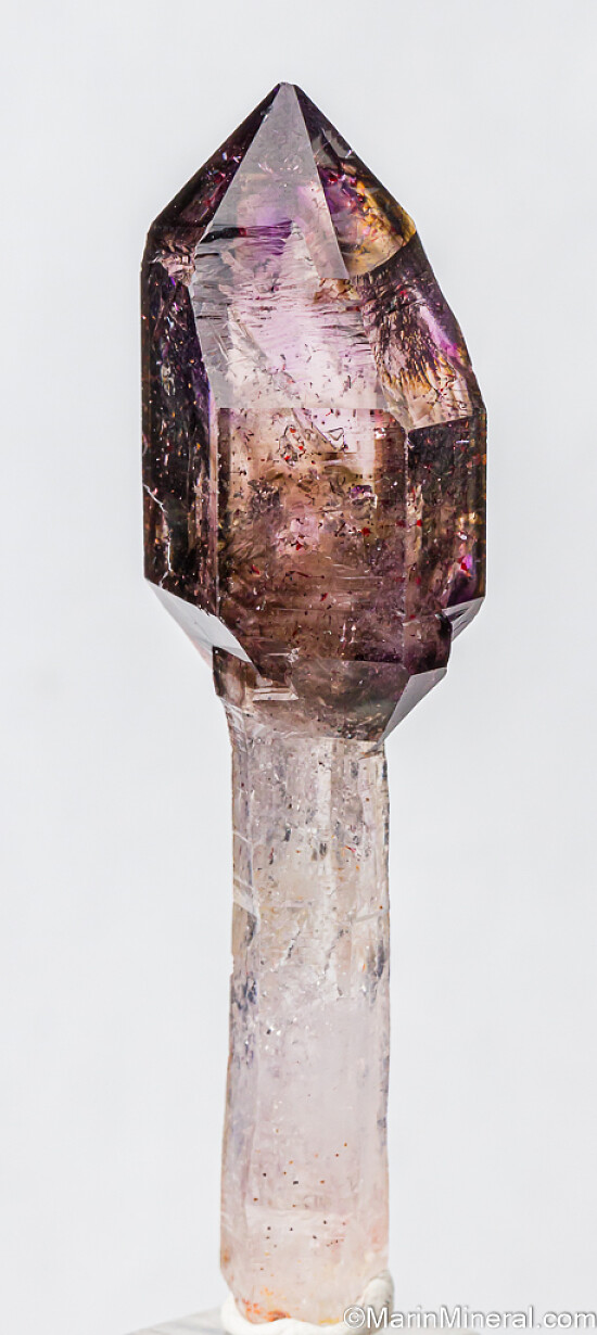 Smokey and Amethyst scepter with red Hematite inclusions on a colorless Quartz stem. High quality, complete crystal hand selected from hundreds.