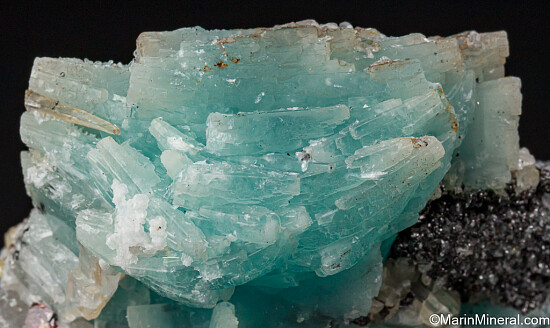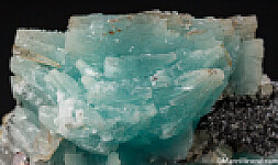 Rare blue Prehnite crystal cluster from the Merelani Tanzanite mines. The blue Prehnite from this locality is far less common than the yellow and displays a color change (two different shades of blue) in indoor versus outdoor lighting. The Prehnite is undamaged though there are some cleaves of Calcite on the left side. This is a great example I've held onto for about 10 years or so and also has small Sphalerite, Diopside, and even a bit of Tanzanite attached, along with the black Graphite.