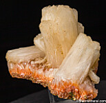 Large pearly white Stilbite crystals on an orange matrix with other small Stilbite crystals. The largest crystal is 3.5cm wide and flares out at the termination. Fine quality specimen and the orange colored matrix makes this unusual. Better than photos.
