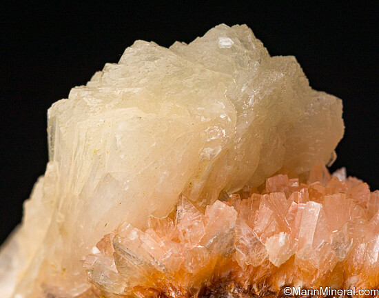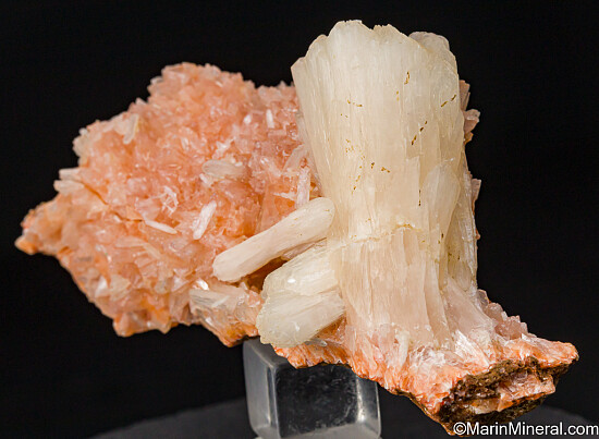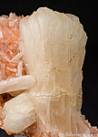 Large pearly white Stilbite crystal on an orange matrix with other small Stilbite crystals. The crystal is 5.5cm tall and flares out at the termination. Fine quality specimen and the orange colored matrix makes this unusual. Better than photos.