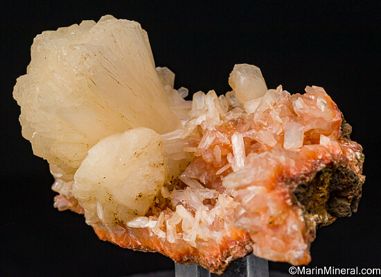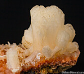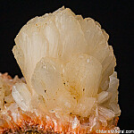 Large pearly white Stilbite crystals on an orange matrix with other small Stilbite crystals. The crystals are complete and flare out at the terminations. Fine quality specimen and the orange colored matrix makes this unusual. Better than photos.