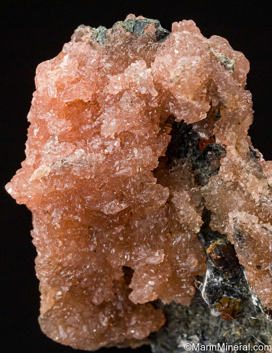 Bright pink crystals of Hureaulite on both sides of specimen. This mine is well known for it's great phosphate minerals, and the Hurealite from this locality is superb.