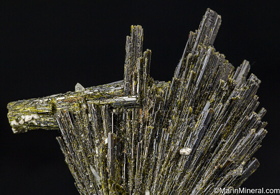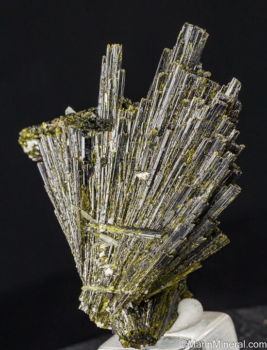 Fantastic specimen of intergrown fan-shaped clusters of Epidote crystals from Peru. There are 3 clusters in all, the largest a full 7cm tall. Well crystallized all around and accented by small Quartz crystals. Comes with a few old labels, including one showing a price of $250. A great collection piece, better than photos.