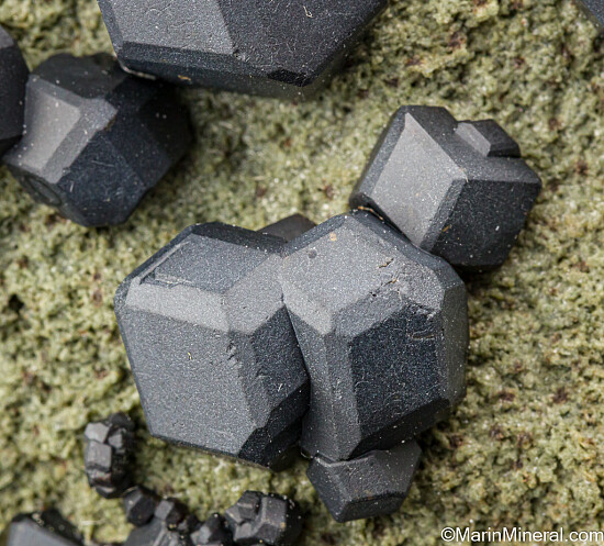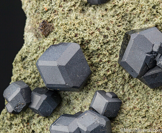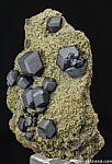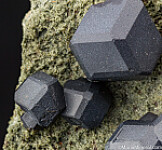 Well separated black garnet crystals on matrix, largest 1.5cm across. Most commonly found as crystal aggregates, aesthetic examples such as this with isolated crystals are uncommon.