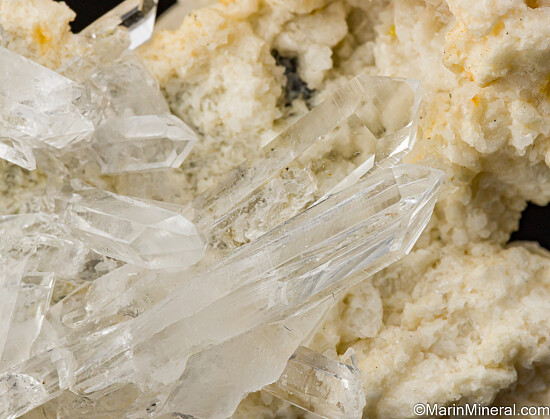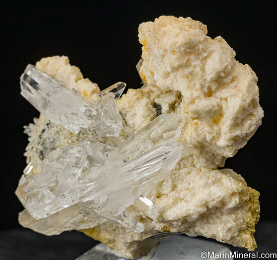 Cluster of transparent Quartz crystals on tan Dolomite. Ex. Tim Sherburn collection, purchased by Tim in 2006 from the David Green collection.