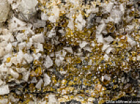 Yellow Sphalerite, wavy white Dolomite crystals, and elongated white Calcite crystals. Ex. Tim Sherburn collection.