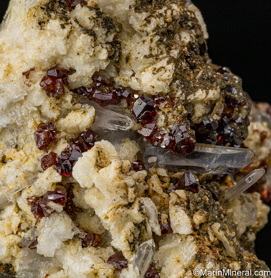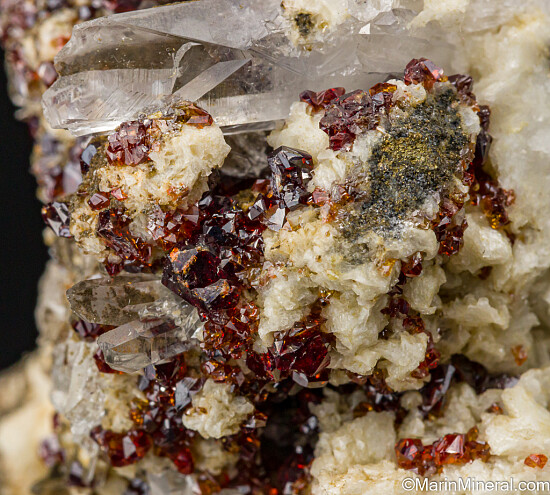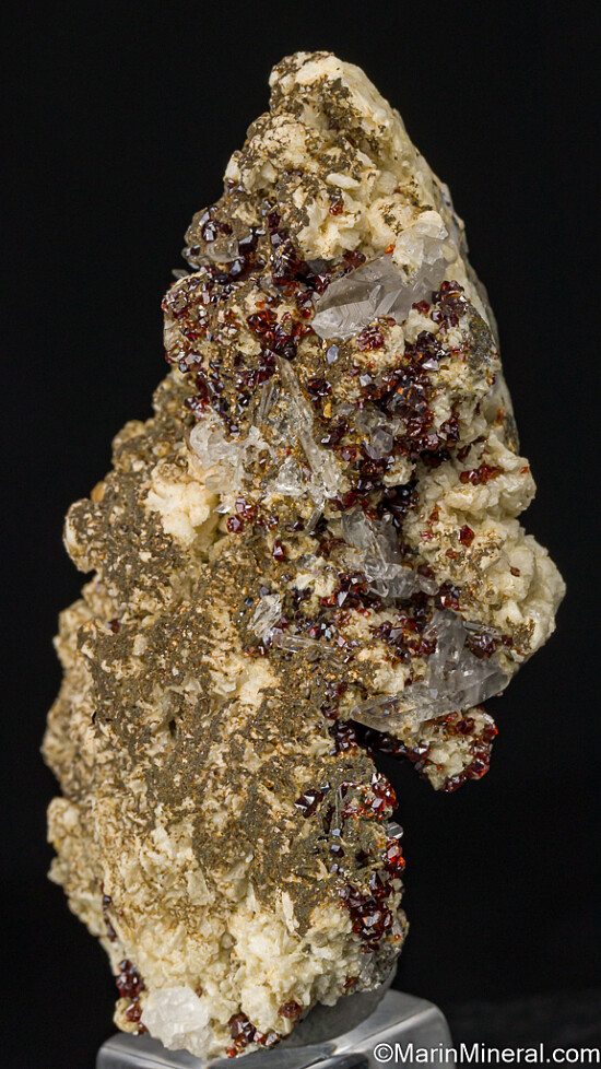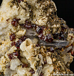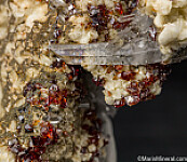 Red 'ruby-blende' Sphalerite with Quartz crystals and Dolomite. The Mogul Mine was a large zinc-lead mine that closed in 1982 and was famous for it's Sphalerite and Galena specimens. Comes with a couple old dealer labels including Isis Minerals and Richard Barstow. Ex. Tim Sherburn collection.