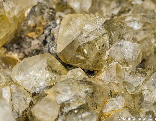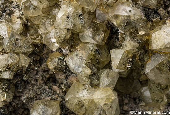 Yellow Calcite crystals intergrown with Pyrite atop Pyrite and small Dolomite crystals. Clean and in excellent condition. Ex. Tim Sherburn collection.