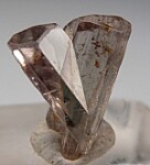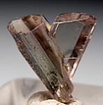 Glassy and gemmy V-twin crystal of color change Diaspore from new finds in the mountains near Pinarcik. These new Diaspore crystals are spectacular in color and form. Small but perfect crystal with flat termination faces on both 'arms'. Complete and undamaged, even the bottom tip is perfect. Gem quality and transparent inside. This has not been cleaned! The little bit of iron staining visible in the photos is hardly noticable in person, and can be removed.